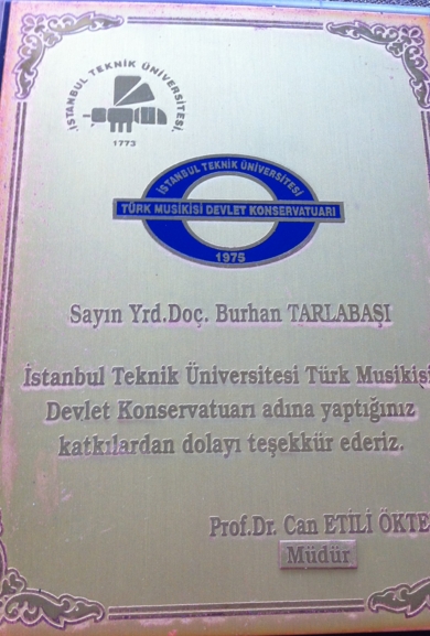 · İTÜ. Türk Müziği Devlet konservatuarı Müdürlüğü,Teşekkür Plaketi,İstanbul/Maçka 2006