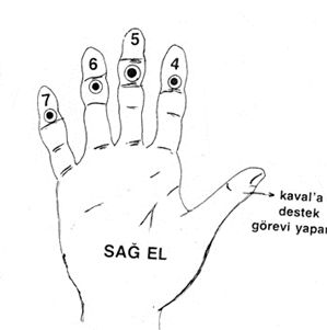 -Sağ elin başparmağı perde görevi yapmaz. Sadece, kavalın 4. ve 5 nci sesperdesinin arka orta kısmında, çalgıya destek görevi sağlar.