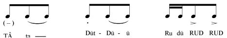 (RA – RU-DU )…. Kalın seslerde dil ile/Oktav Seslerde..(Tİ-TU) hecesiyle..