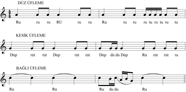 DÜZ ÜFLEME: (Nota değerince) ¼ nota değeri esas alınarak yapılan üflemedir.