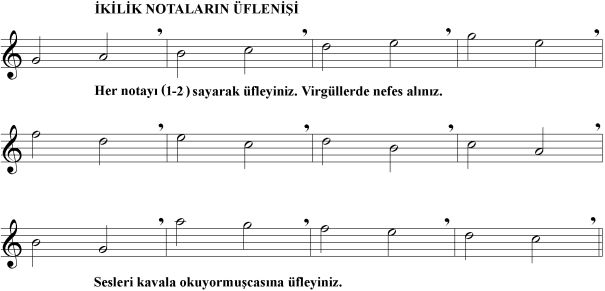 Notaları, vurgularına özen göstererek üfleyiniz