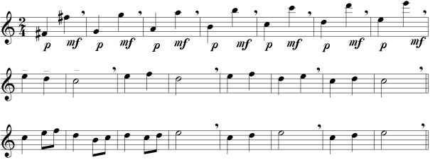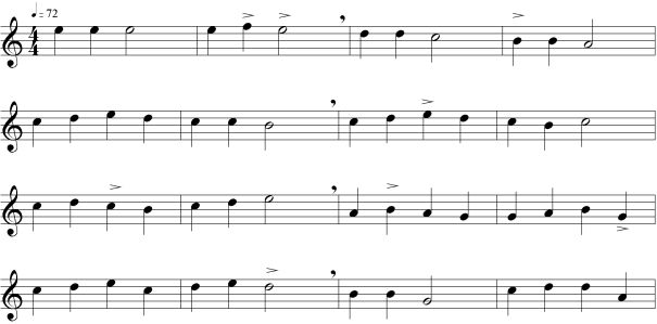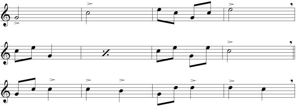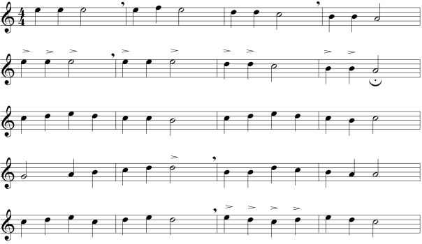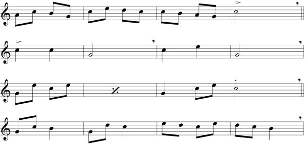 -İkinci ölçüdeki tekrar işaretinden sonra nefes alabilirsiniz.