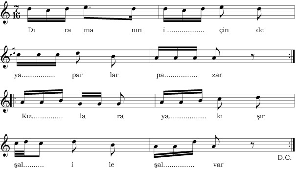 Birinci icra: 80 İkinci icra: 112 ( M) =1/4’(63) Yöresi: Kemâliye/EGİN)