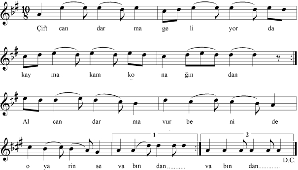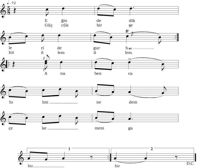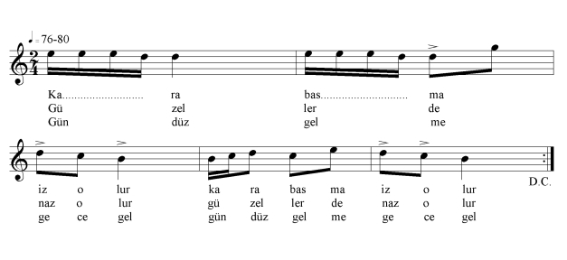 - HER ÖLÇÜ İKİ ÜFLEME VURUŞU İLE TÜRK AKSAĞI USULÜNDE SESLENDİRİLECEK.
