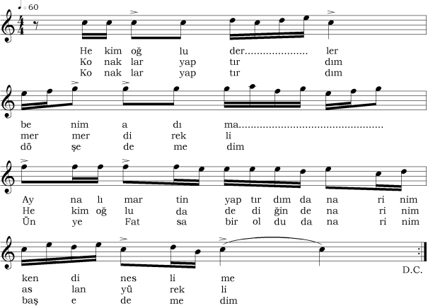 - HER ÖLÇÜ İÇİN (TÂ – tata / TÂ ta..) RİTMİYLE