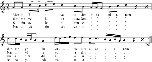 - HER ÖLÇÜ (NÂ-na na) RİTMİYLE DÖRT ÜFLEME VURUŞU İLE SESLENDİRİLECEK.